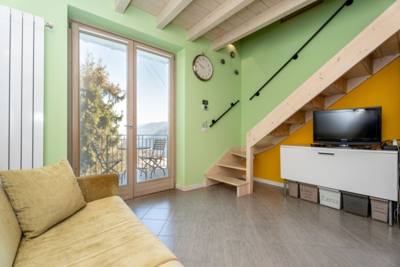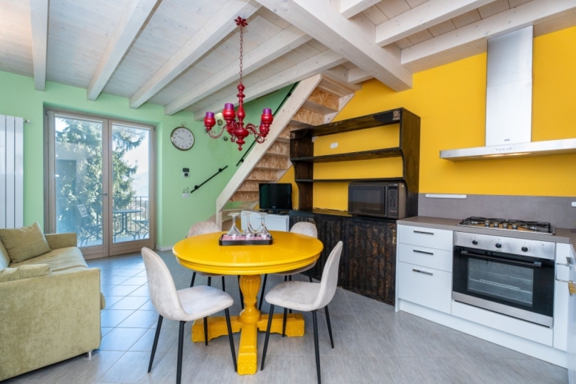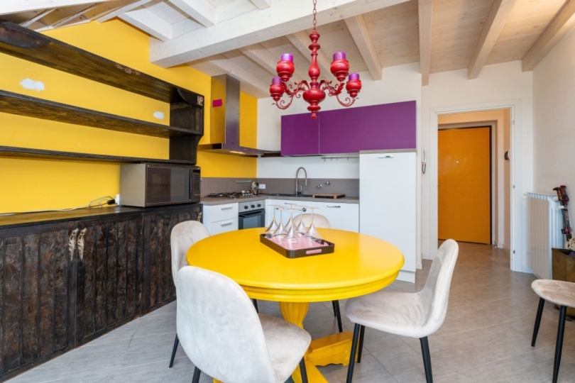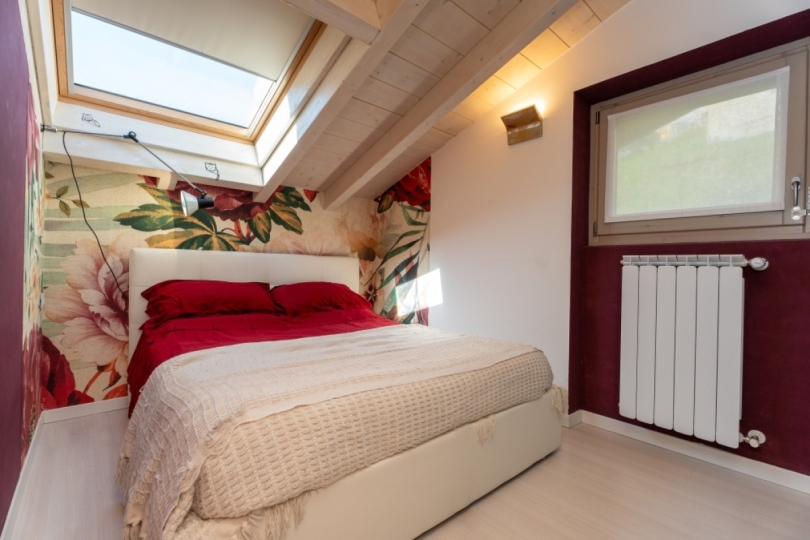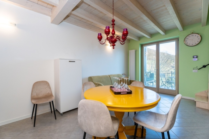 Immagina di rientrare a casa e lasciarti accogliere dal calore delle travi a vista, che con il loro profumo di legno avvolgono ogni stanza, dal living alla zona notte. Situato al primo e ultimo piano, questo appartamento su due livelli è un inno alla luce e alla tranquillità.