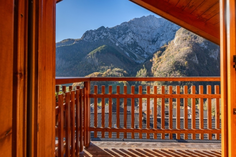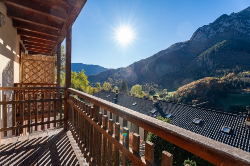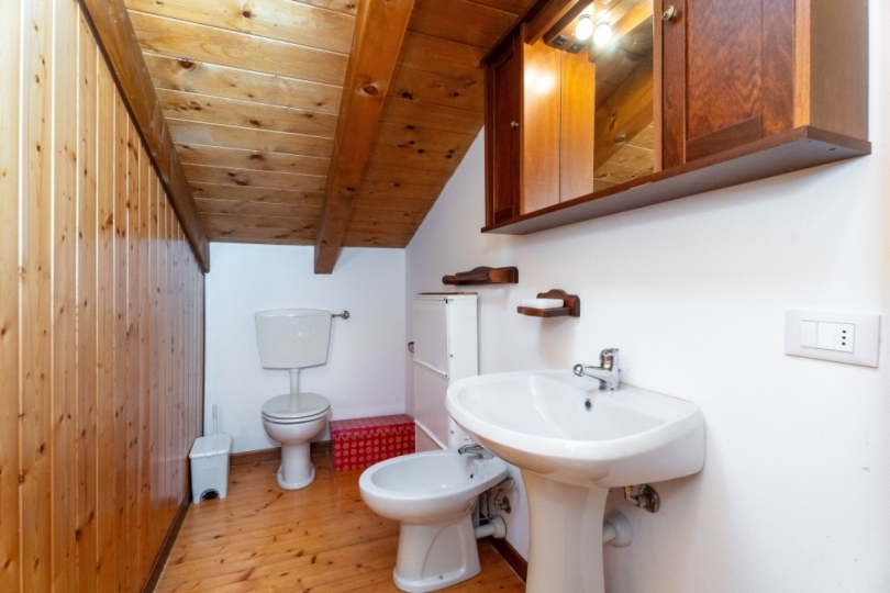 Salendo al piano superiore, tre camere da letto e un secondo bagno offrono spazio e comfort per tutta la famiglia. Due balconi in legno regalano una vista mozzafiato sulla vallata circostante, mentre il box auto e il riscaldamento autonomo aggiungono comodità e praticità alla vita quotidiana.