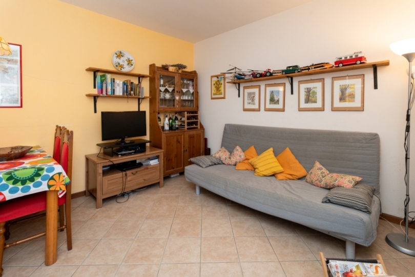Varcando la soglia di questo Bilocale al piano terra con doppio giardino privato, verrai accolto da un soggiorno con angolo cottura.