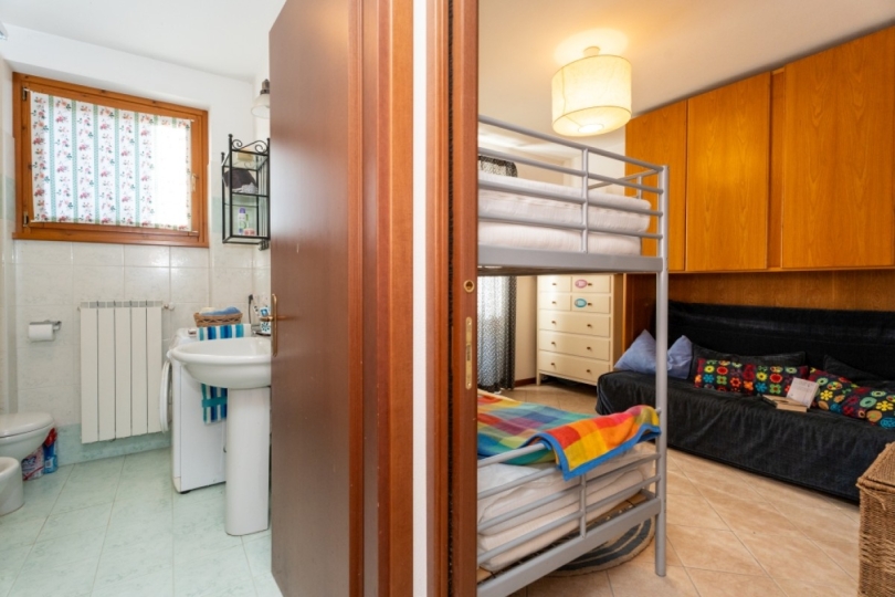 Dal disimpegno troverai una camera da letto matrimoniale luminosa, ideale per riposarti dopo una giornata di avventure all’aria aperta. A completare, un ampio bagno, dotato di ogni comfort.