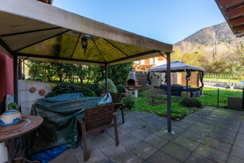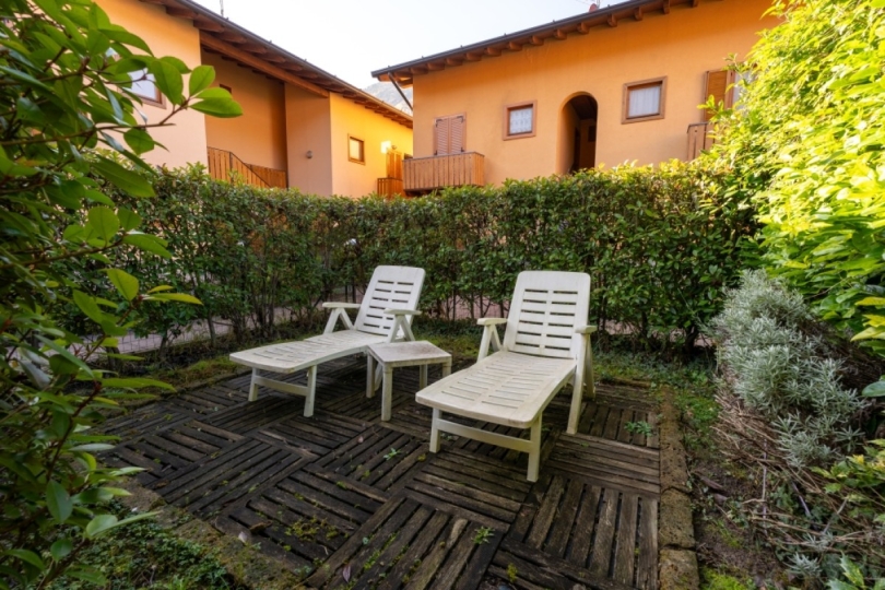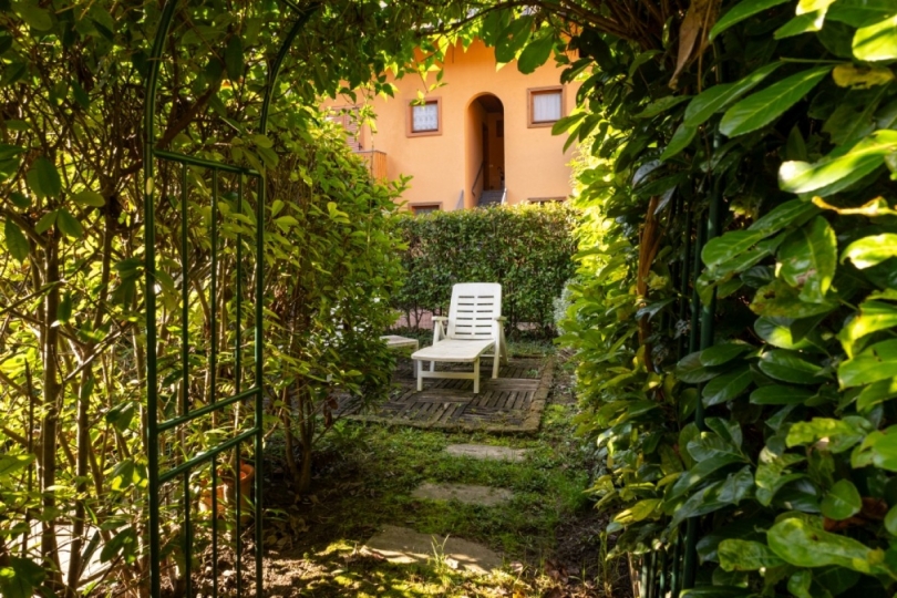 Dal soggiorno, l’accesso diretto al giardino (con una grande parte pavimentata) ti permetterà di godere di uno spazio esterno perfetto per pranzi e cene con famiglia ed amici.