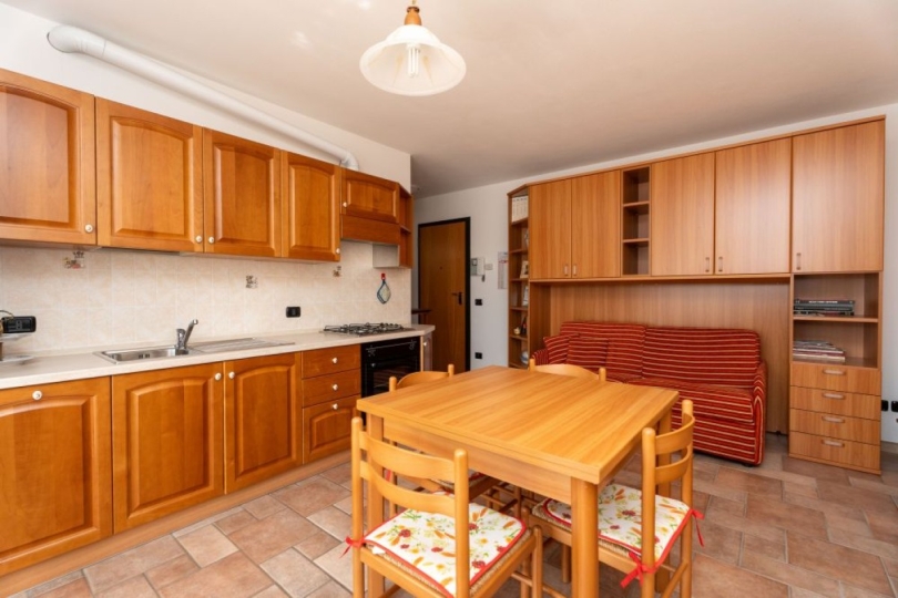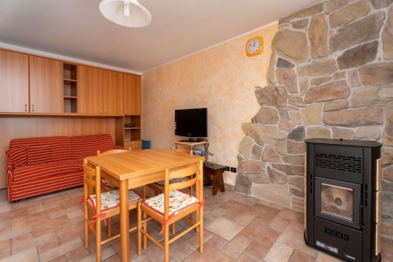 L’appartamento si apre su un luminoso soggiorno con stufa, ideale per creare un’atmosfera accogliente nelle stagioni più fredde, con angolo cottura ben organizzato e accesso diretto a un ampio terrazzo dove potersi rilassare all’aria aperta. La camera matrimoniale è ampia, arredata con un letto matrimoniale comodo che garantisce sonni rigeneranti e accanto, trova spazio anche un letto singolo. Il bagno è completo, dotato di tutti i comfort necessari per una routine quotidiana comoda e rilassante. Il ripostiglio rappresenta un utile spazio extra, pensato per organizzare al meglio gli spazi e mantenere tutto in ordine, senza rinunciare alla funzionalità.