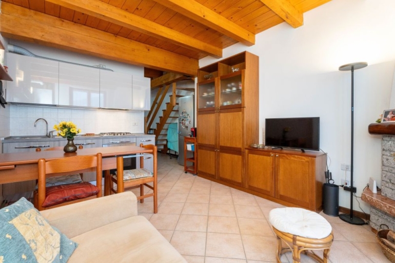 Al piano d’ingresso ti accoglie un luminoso soggiorno con angolo cottura, impreziosito da un camino che regala atmosfere intime e perfette per le serate d’inverno. Dal balcone potrai respirare la quiete e contemplare il ritmo lento del paese.