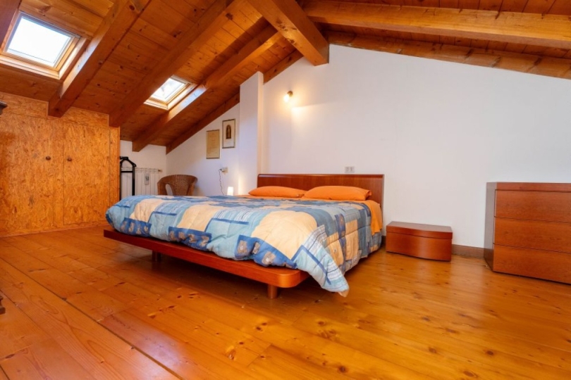 Salendo al piano superiore si apre un incantevole sottotetto open-space con travi a vista, un ambiente che profuma di autenticità e che potrai trasformare nel tuo nido personale: camera, studio, zona relax… spazio per i tuoi sogni.