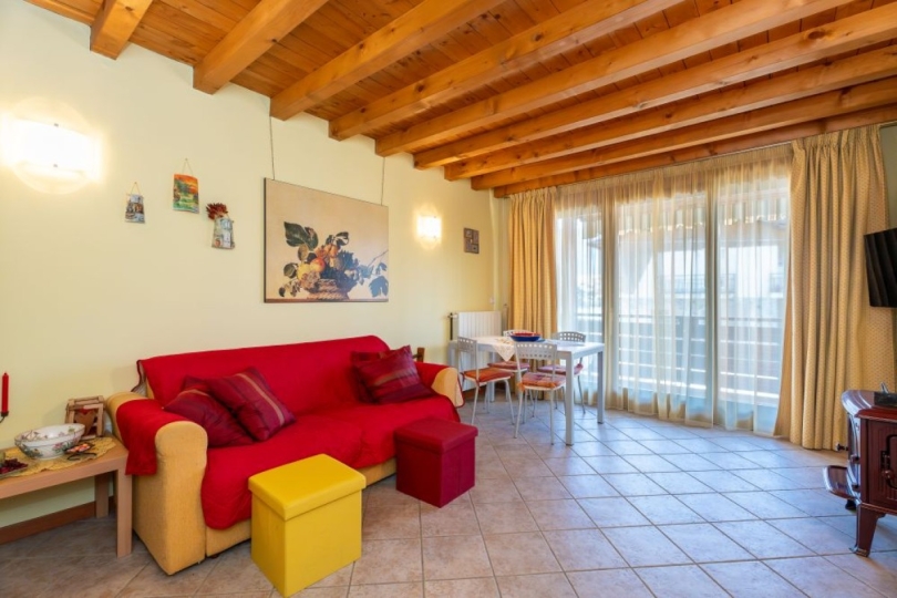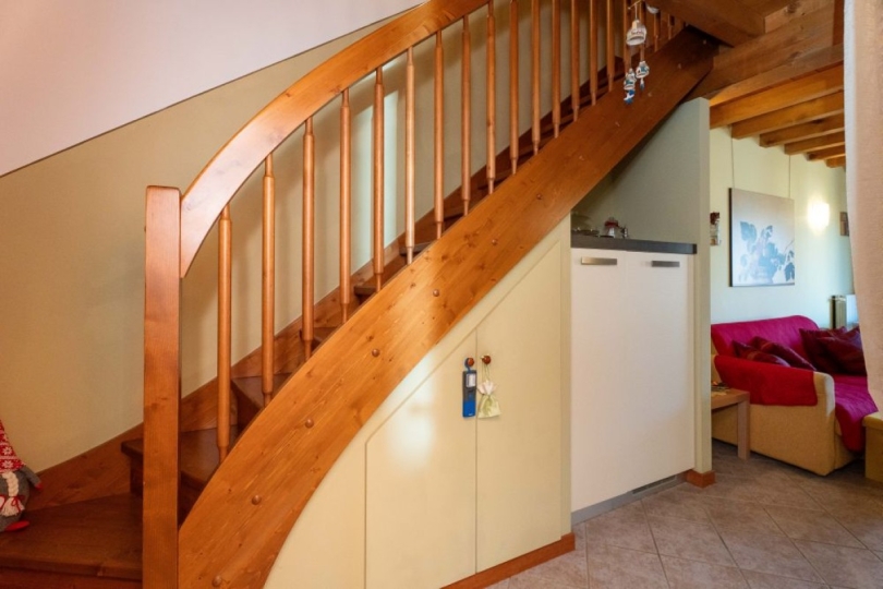 Questo caratteristico appartamento su due livelli ti accoglie con un soggiorno luminoso con angolo cottura, perfetto per vivere momenti di serenità. Da qui si apre un ampio terrazzo, ideale per colazioni all’aperto o serate in relax.