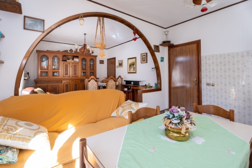 La zona giorno accoglie un grande salone con cucina abitabile separata