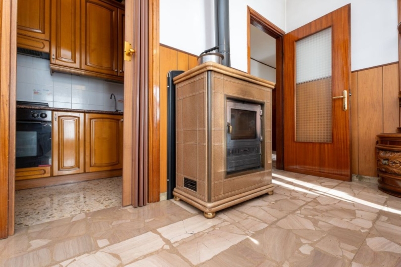 La casa accoglie con un ampio soggiorno luminoso, impreziosito da una caratteristica stufa che crea un’atmosfera calda e conviviale nelle giornate più fredde. Il cucinino funzionale, le tre camere da letto di generose dimensioni e il bagno completano gli spazi interni, pensati per vivere la casa con comfort e semplicità.
