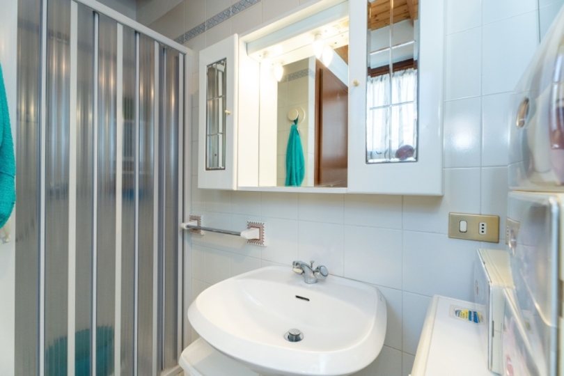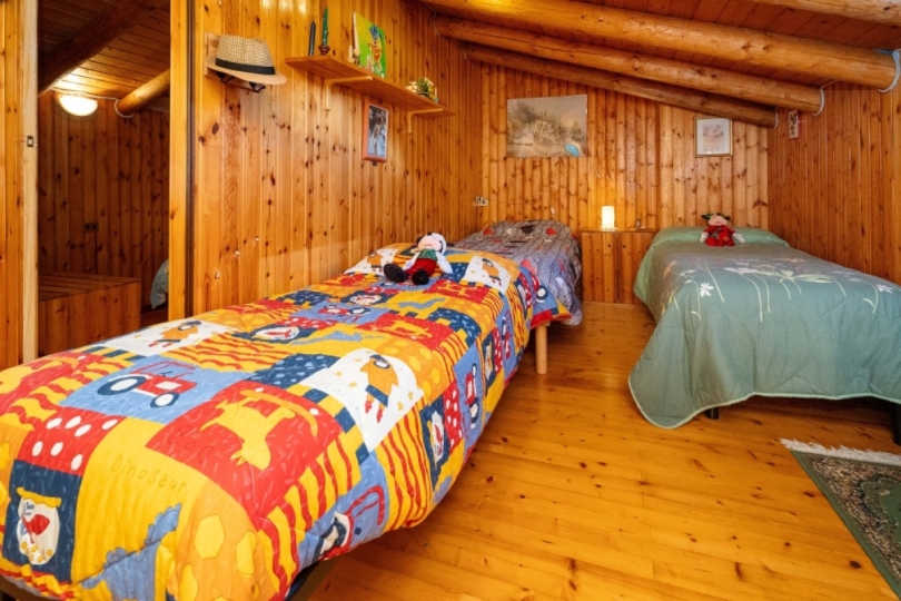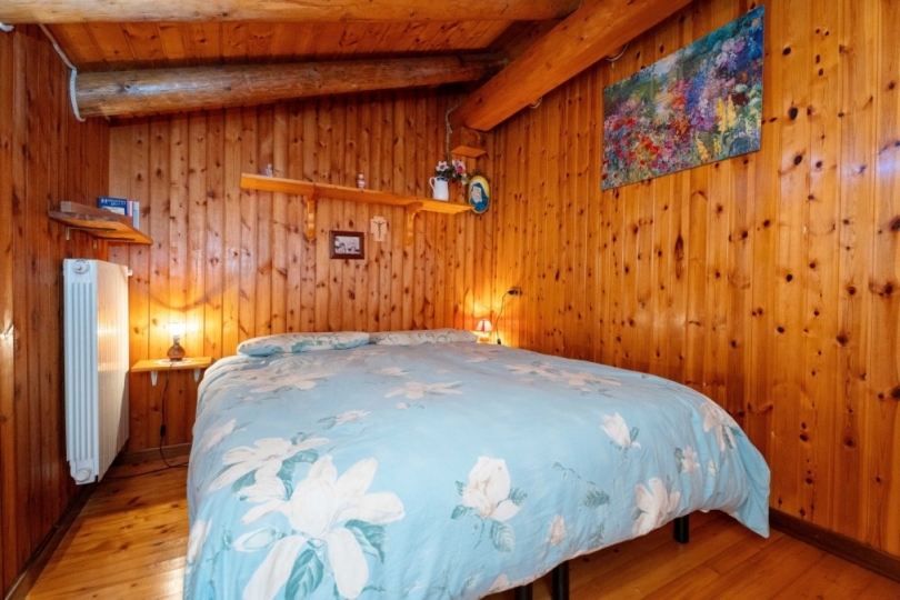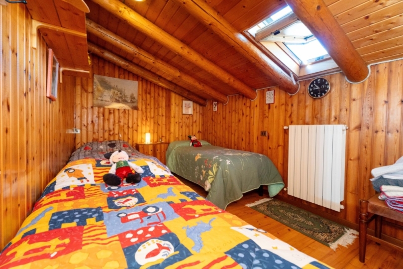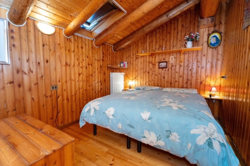 Salendo la tipica scala in legno, si accede al piano superiore: un sottotetto interamente perlinato che racchiude tutta l'essenza dello stile alpino. È uno spazio intimo, protetto dal tetto spiovente, dove il profumo del legno ti regalerà sogni sereni e profondi.