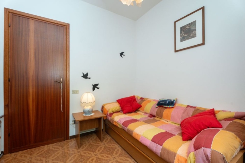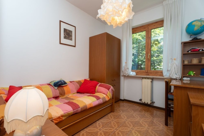 La zona notte comprende una confortevole camera matrimoniale, dotata di un balcone privato che offre un angolo di tranquillità, e una camera singola, perfetta come stanza per ospiti o studio. Il bagno, moderno e funzionale, completa questa zona della casa, garantendoti praticità e comfort.