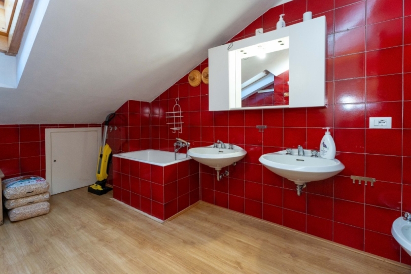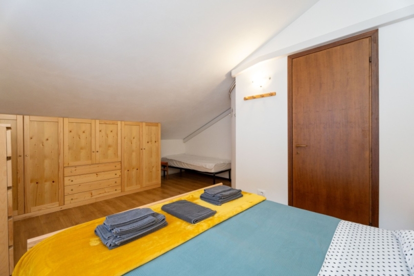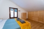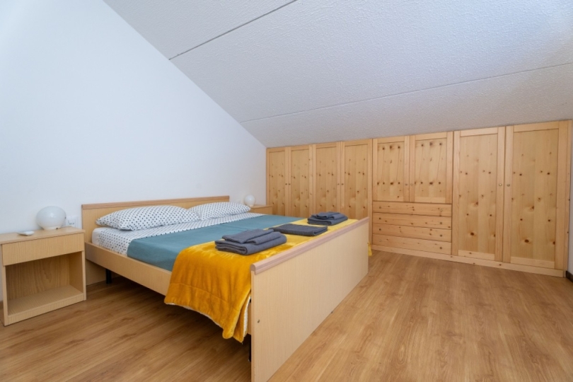 Al piano superiore, la zona notte offre tre ampie camere da letto, spazi pensati per il riposo dopo una giornata sulla neve o lungo i sentieri, e un secondo bagno a servizio del piano.