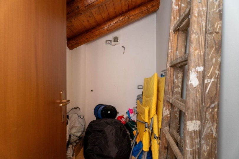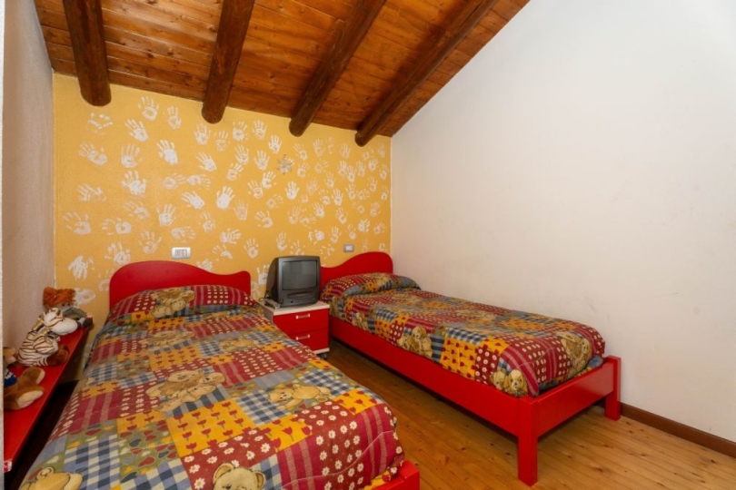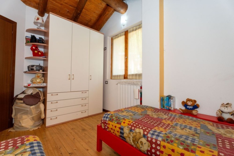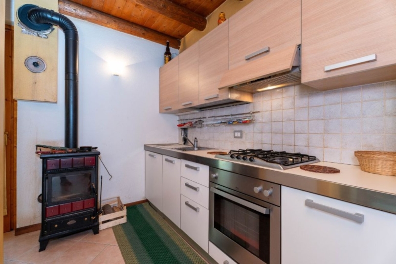La stufa a legna crea un’atmosfera avvolgente, perfetta per le serate invernali o per momenti di relax davanti al fuoco. Le travi a vista aggiungono un tocco di stile e autenticità, rendendo questa casa un vero gioiello di charme e comfort.
